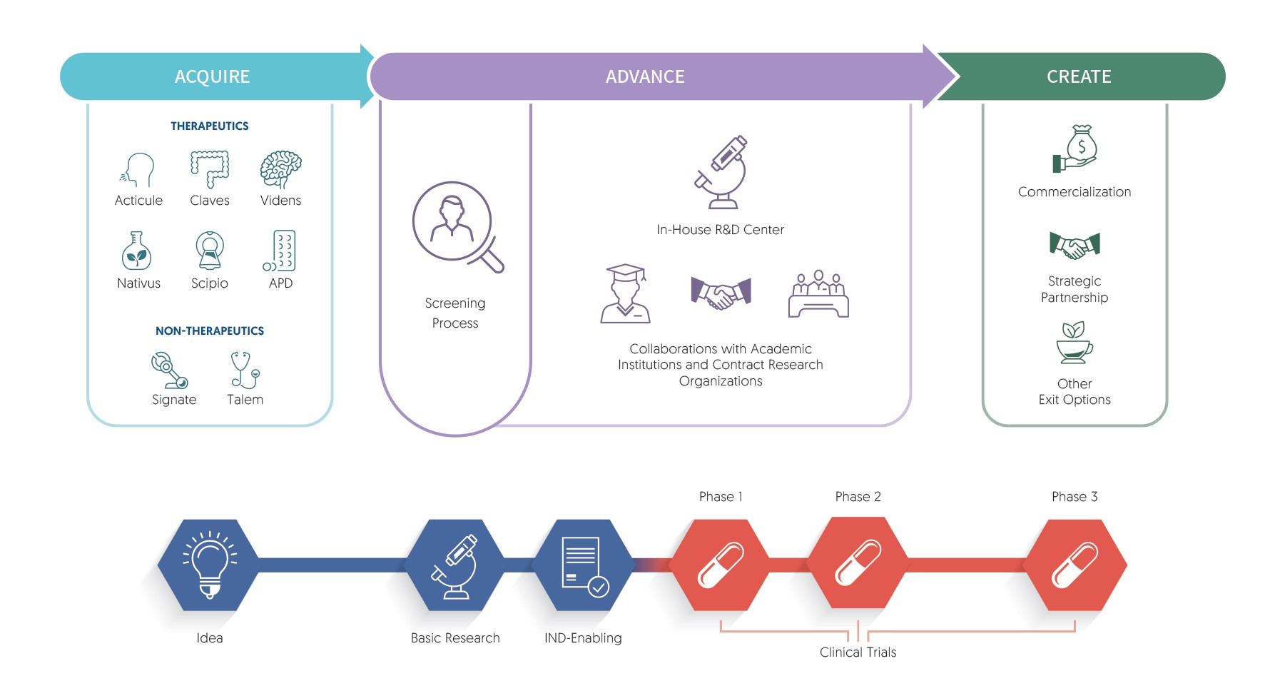Our goal is to catalyze the development and improvement of a broad portfolio of projects under development of preclinical staged novel therapeutics and diagnostics across a wide range of disease/therapeutic areas. Eventually, we aim to transform clinical outcomes through sub-licensing and commercialization to create value and generate income for further expansion of our project portfolio and sustainable business growth.